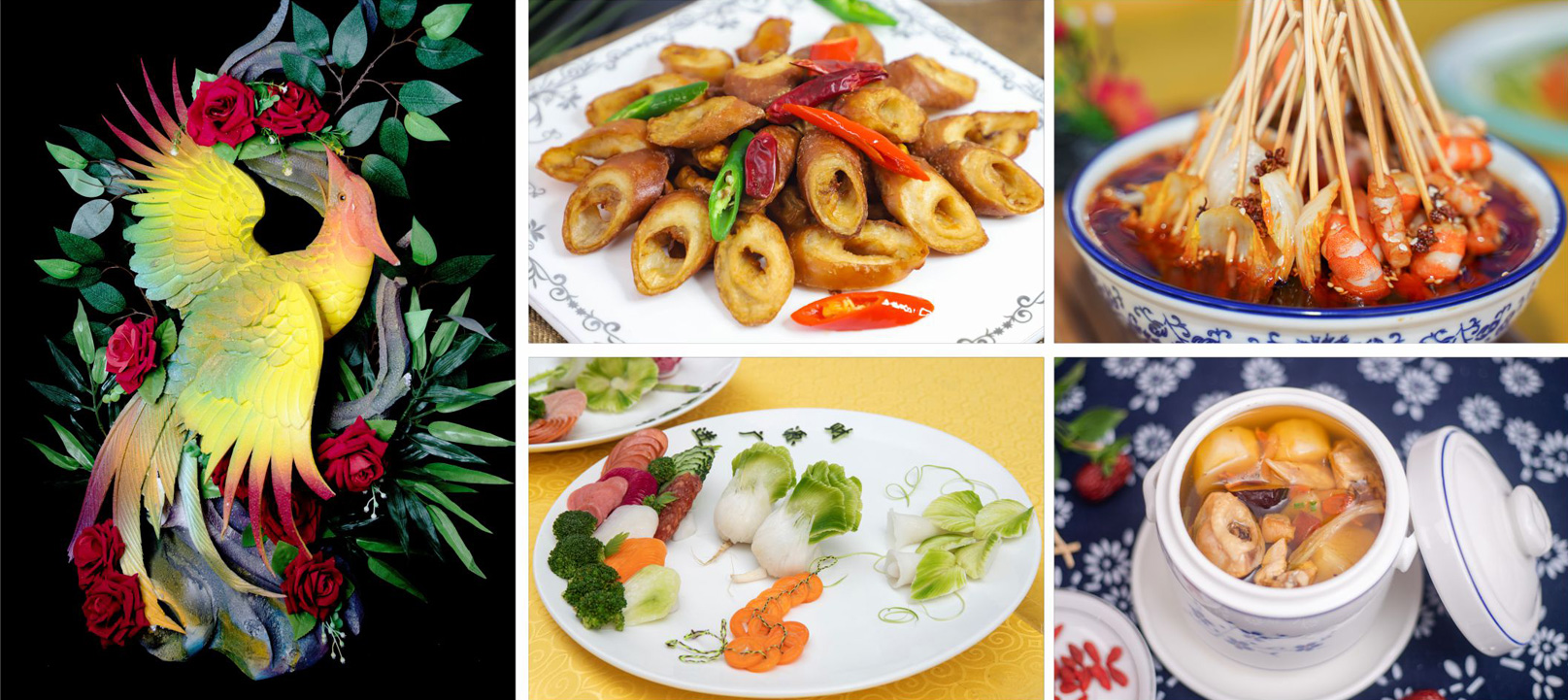 主干课程:粤菜、川湘代表菜、广西名菜、广式面点、广式烧腊、食品雕刻、冷拼与盘饰、水果拼盘、宴席制作指导、技能鉴定考试等。