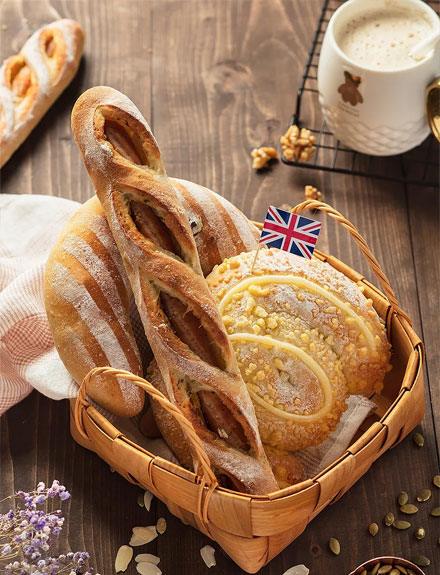 2.掌握各式面包:软质面包(雪芙面包、彩虹吐司等)、硬质面包(法式长棍、俄罗斯硬质啤酒面包等)、起酥面包(金砖面包、起酥羊角包等)制作工艺